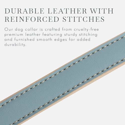 NINA WOOF Cupertino Dog Collars, Harnesses & Leashes Made from Vegan Leather with Dog Tracker Device Holder Adjustable Dog Collar – Color Blue, Medium