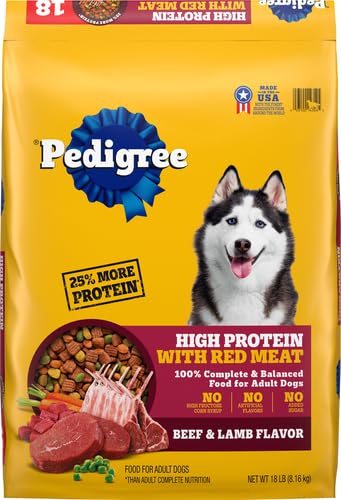 Pedigree High Protein Adult Dry Dog Food Beef and Lamb Flavor Dog Kibble, 18 lb. Bag