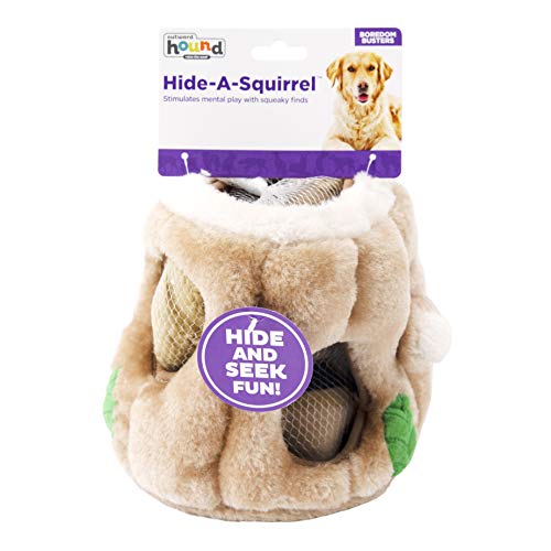 HIDE & SQUEAK FUN: The Hide A Squirrel dog puzzle is an easy way to get your furry friends engaged for hours of fun! Just fill the tree trunk with 3 stuffed squirrels, toss it, and let your dog’s natural hunting instincts kick in!